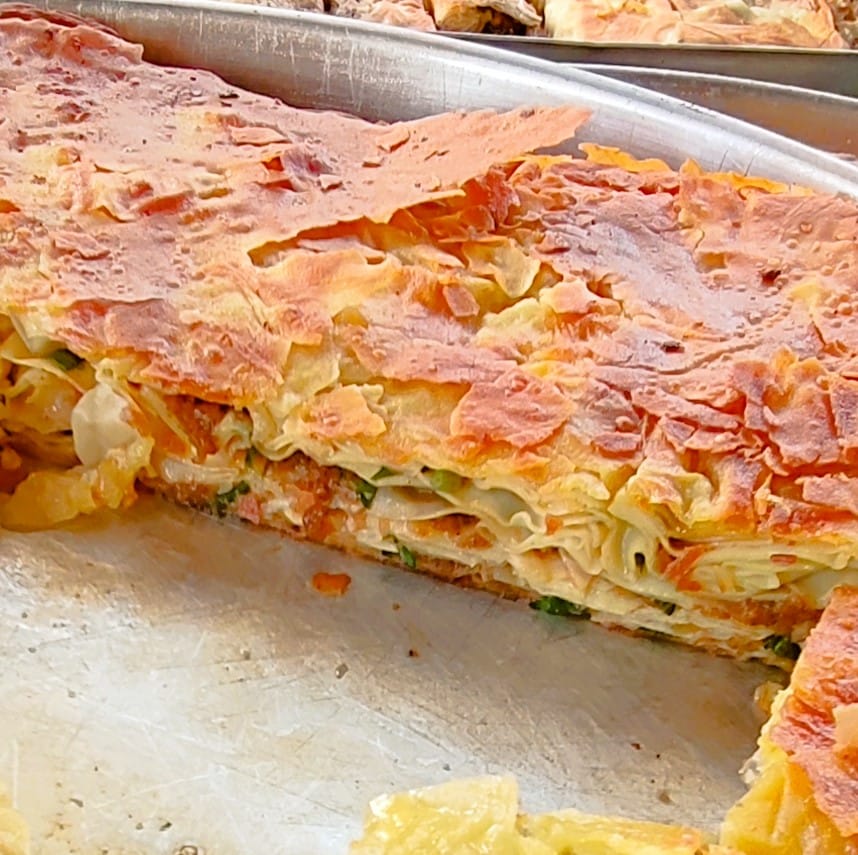 Tatlılarımız için en hafif olan budur çünkü tek kat yufka yayılarak ve üstüne malzemeler koyularak yapılır, bu tatlımızda malzemeler yufkanın altında değil üstünde pişer ve tek kat hamurdan ötürü gevrek bir yeme deneyimi sunar.